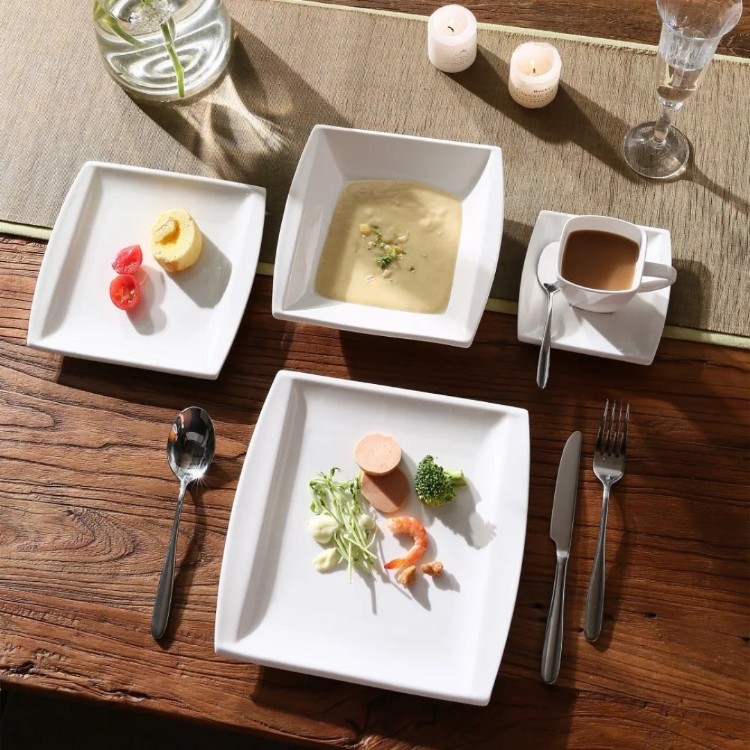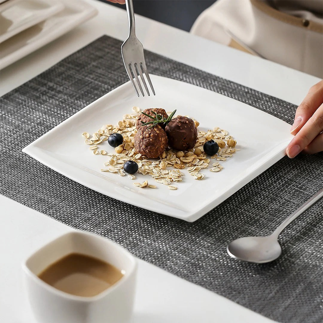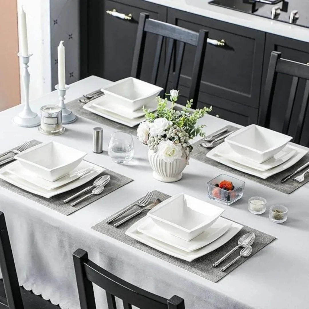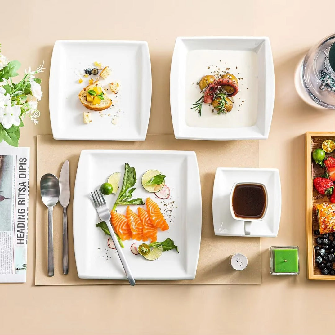 Timeless Minimalist Design: The Blance Dinnerware Set features a sleek, minimalist design that effortlessly complements any table setting. Its simple, clean lines and white porcelain finish make it the perfect addition to your kitchen, blending seamlessly with existing flatware and enhancing the aesthetic of your dining experience. Its understated elegance ensures it fits a variety of dining styles, making it suitable for both everyday use and special gatherings.