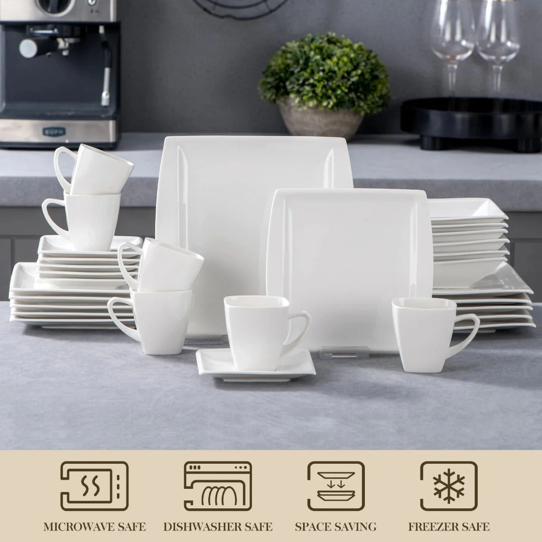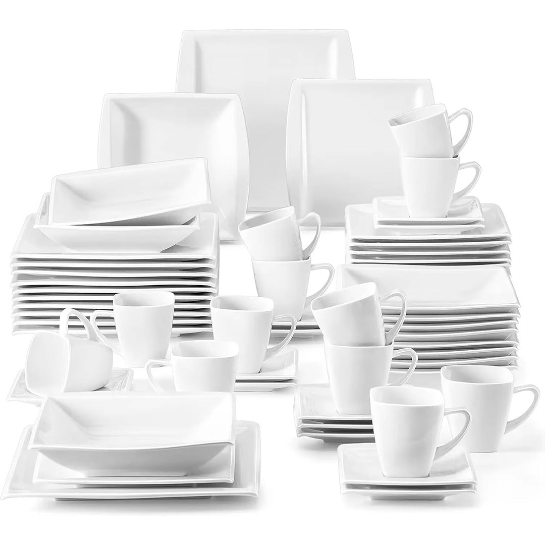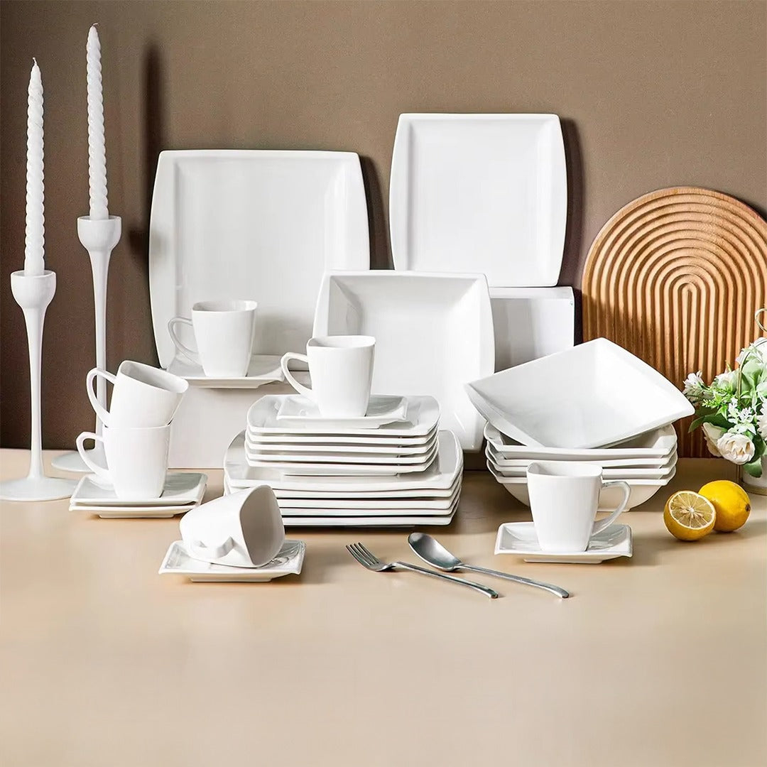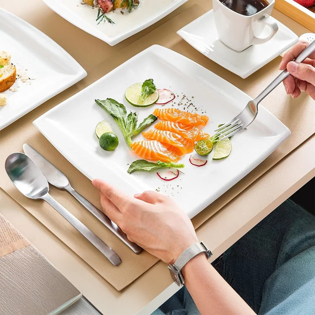 Timeless Minimalist Design: The Blance Dinnerware Set features a sleek, minimalist design that effortlessly complements any table setting. Its simple, clean lines and white porcelain finish make it the perfect addition to your kitchen, blending seamlessly with existing flatware and enhancing the aesthetic of your dining experience. Its understated elegance ensures it fits a variety of dining styles, making it suitable for both everyday use and special gatherings.