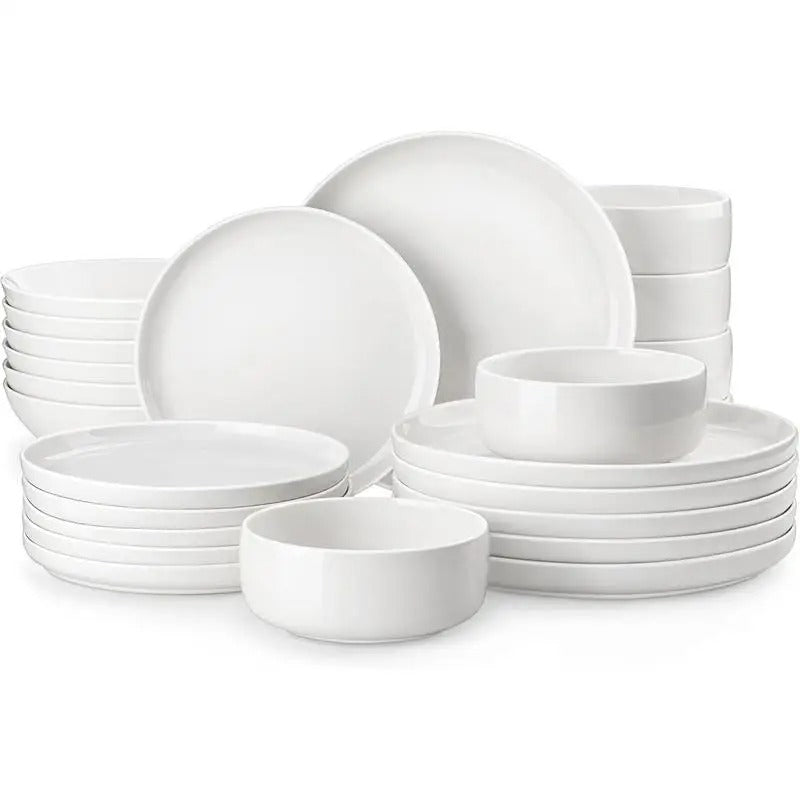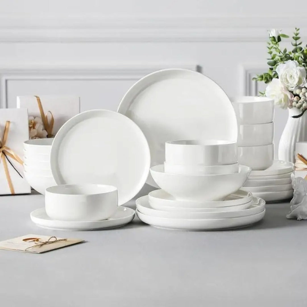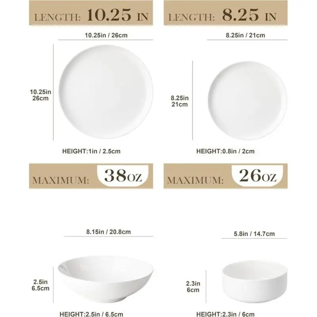 Timeless Minimalist Design: With a sleek, minimalist design inspired by the natural beauty of fine porcelain, the Luna Dinnerware Set features smooth, simple lines that add sophistication to any dining table. The timeless aesthetic makes it easy to complement with your existing flatware and kitchen décor, whether for casual meals or more formal settings.