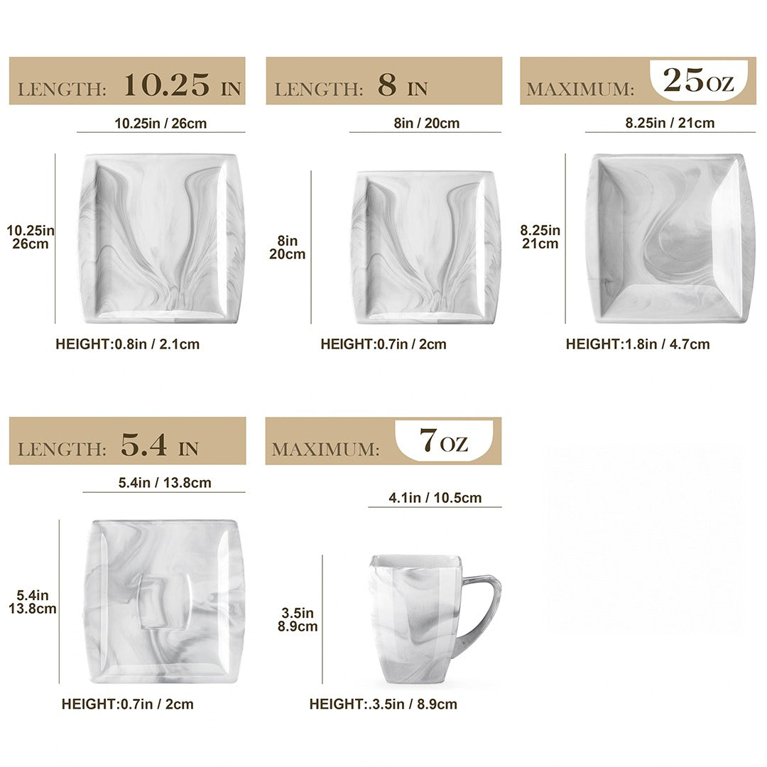 Premium Quality & Non-toxic: Crafted with fine porcelain, Marble Dinnerware Set from EulaHome is FDA certified, free from lead and cadmium, and built with high-temperature ceramic roasting. The result is a solid and dense surface that ensures no chemical reactions with food, making it safe for you and your loved ones. The strength of the ceramic is twice that of standard dinnerware, promising long-lasting durability.