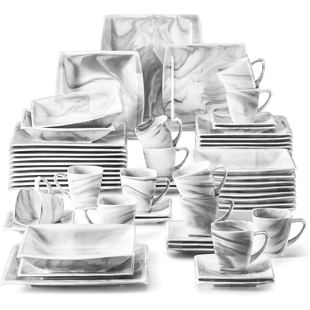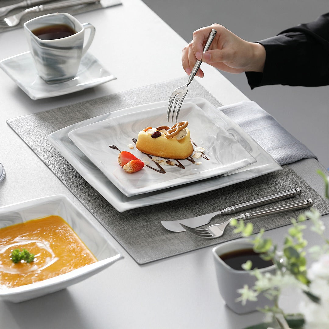 Premium Marble Design: The Marble Dinnerware Set from Eula Home is crafted from high-quality marble stoneware porcelain. The elegant marble grey finish brings a modern, timeless aesthetic to your dining table, perfect for both everyday use and special occasions.