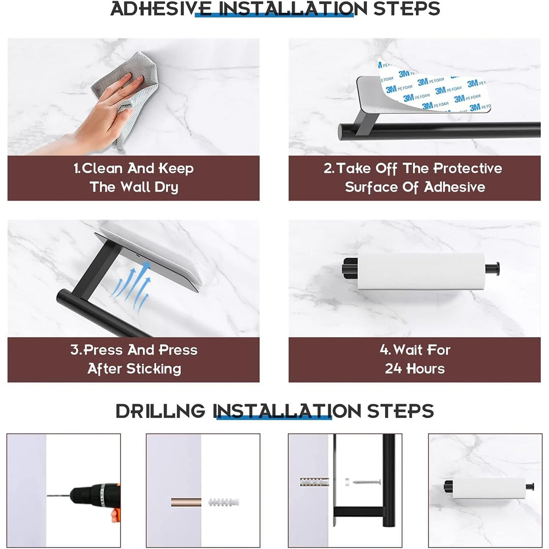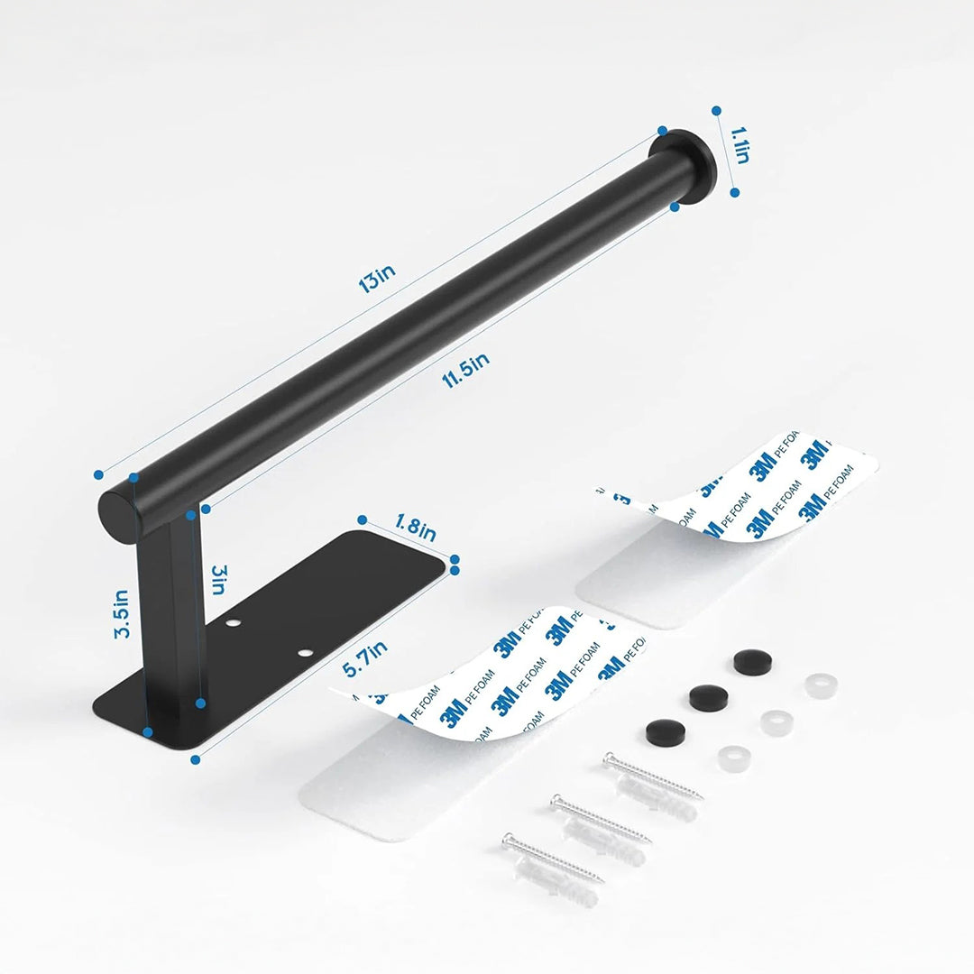 Strong Adhesive with Maximum Load Capacity: The Venla Paper Towel Holder is equipped with a self-adhesive backing that holds up to 22lbs, ensuring stability for larger paper towel rolls. For uneven surfaces, screws can be used for extra support. Whether you use adhesive or screws, this holder stays securely in place, keeping your items safe and accessible.
