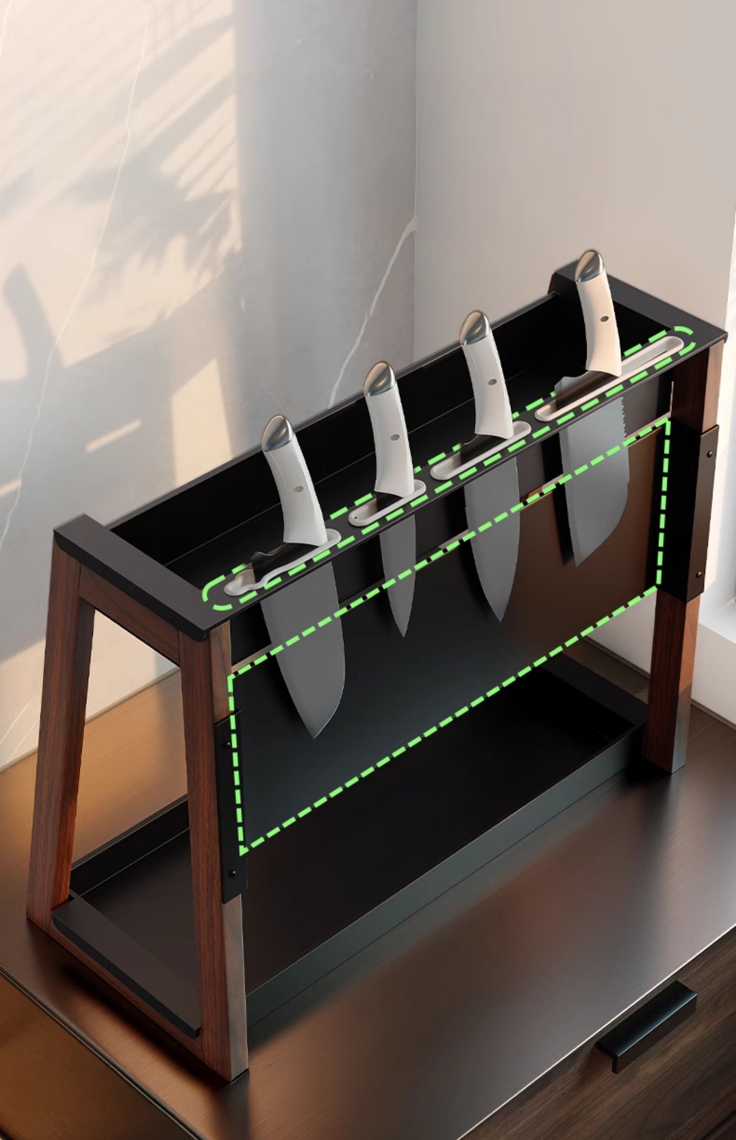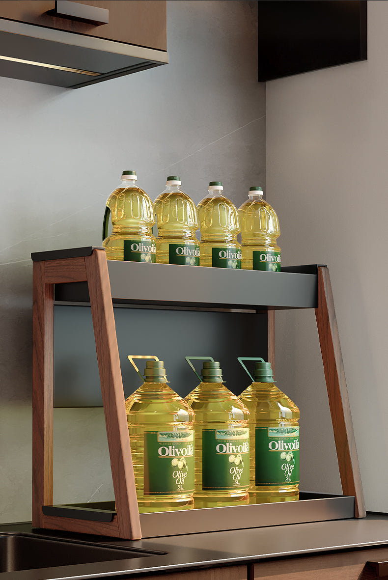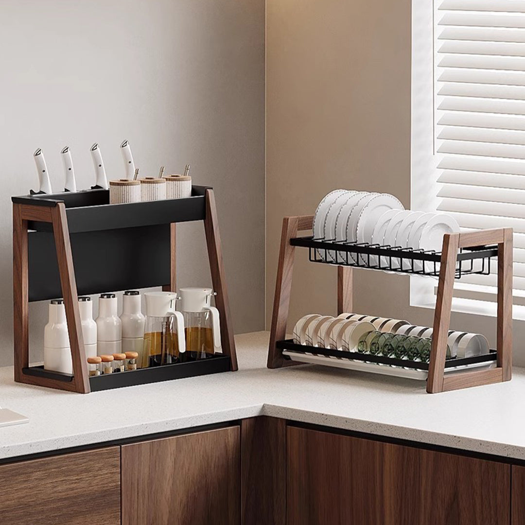 Aesthetic Modern Design: The timeless charm of walnut wood paired with clean lines and a minimalist structure creates a sophisticated addition to any kitchen. The Linnea rack not only organizes but also enhances the beauty of your countertop, making it a perfect choice for modern homes.